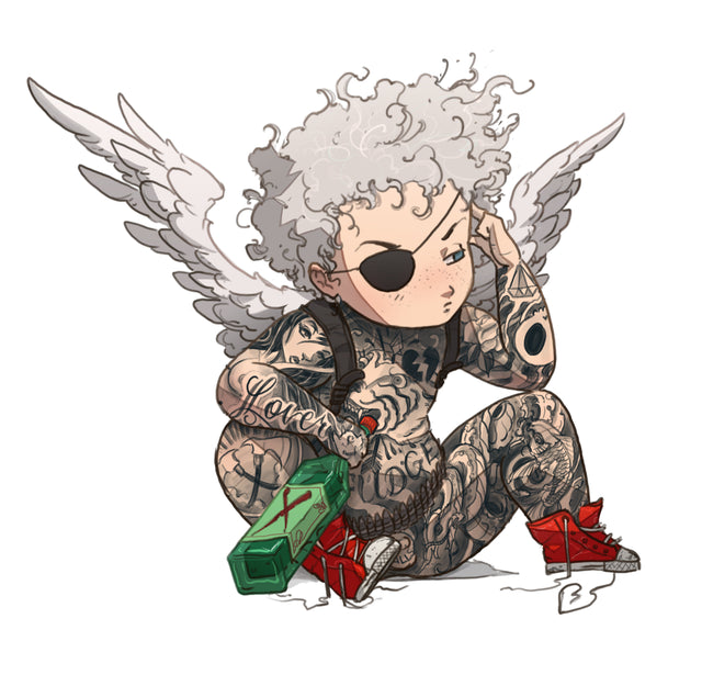 Tarnished by the world and its rigid ideologies, he was a modernized and 'rougher' version of the infamous mythological cherub. I felt I could relate. He was the perfect mascot for me at the time.